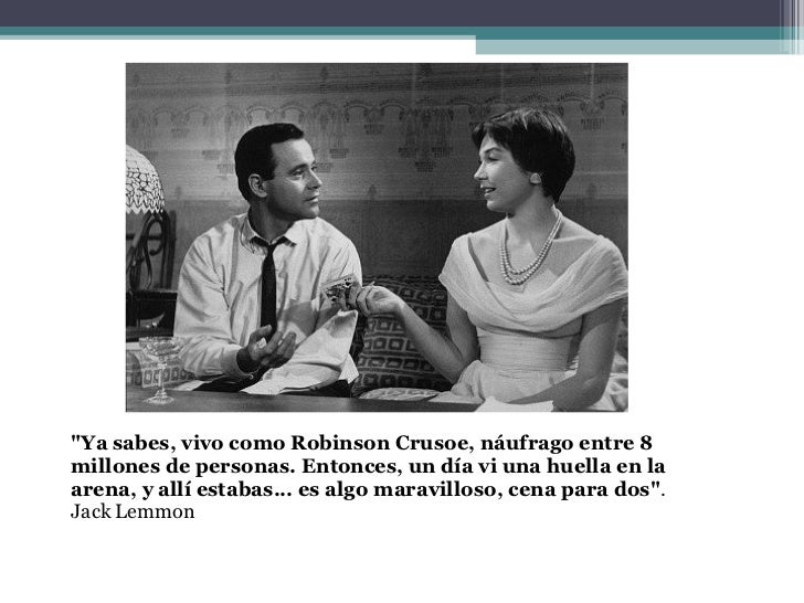 Hoy en frases de cine tenemos una frase de una obra maestra de Billy Wilder "El apartamento" con el siempre genial Jack Lemmon y Shirley Mc Laine.